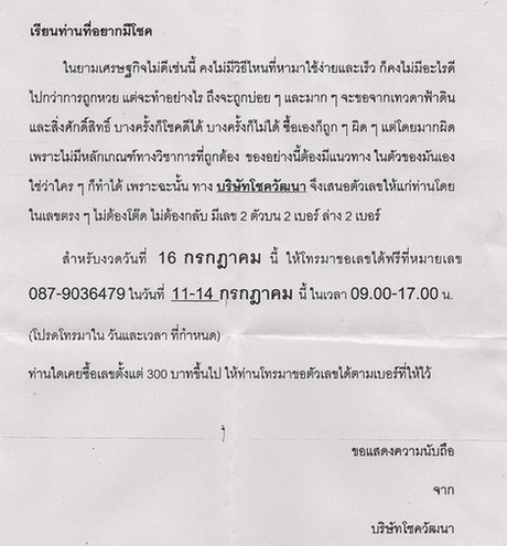 เฮ้อ!ไหนๆจะให้โชคกันทั้งที ก็ใส่ตัวเลขมาซะเลยก็จบเรื่อง ใครจะเอาเลขก็โทรไปคุยกับเขาได้เลยนะครับ - - |