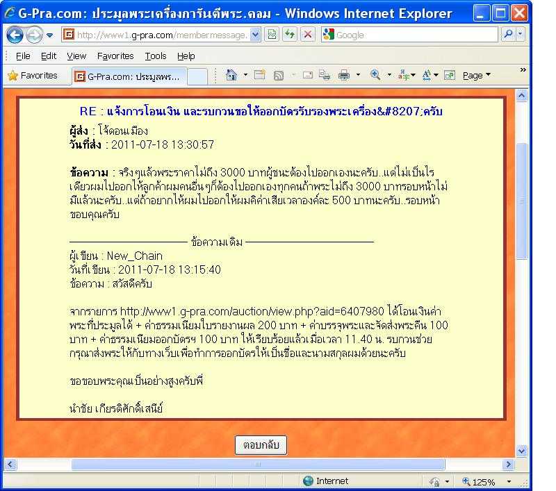 โอนเงิน + แจ้ง ไม่เกิน 24 ชั่วโมงหลังปิดประมูล ร้องขอให้ส่งออกบัตร กลับจะโดนค่าเสียเวลาองค์ละ 500.- ไหวมั๊ยครับพี่น้อง อยู่มา 4 ปี ไม่เคยปฏิบัตินอก กฏ กติกา ซักครั้ง เจอแบบนี้ชักอยากจะลองใช้ กฏความพอใจเป็นครั้งแรกซะแล้ว