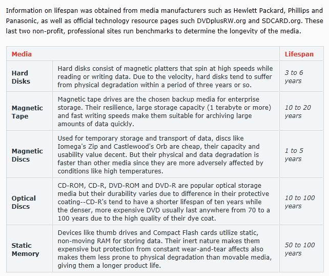 แต่หากเป็น Optical Disk ประเภท DVD-R ที่มีคุณภาพสูง ๆ จะมีอายุตั้งแต่ 70-100 ปีทีเดียว