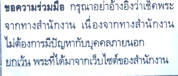 นี่เป็นใบบอกของสำนักการัณตีพระ ที่แนบมาให้สมาชิกเวลาส่งพระไปตรวจสอบ เพราะกันไว้ว่ามีการชอบแอบอ้างใช้ชื่อเสียงของการัณตีพระมาอ้างอิงในการขาย โดยมีแต่คำพูดลอยๆ แต่ปราศจากหลักฐาน |