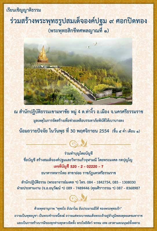 เรียญเชิญส่ง พระบรมสาริกธาตุ,พระพุทธรูป,แก้ว,แหวน,เงิน,ทอง,เพชรพญานาค,เหล็กไหล,แผ่นทอง, วัตถุมงคล นำมาบรรจุในพระพุทธรูปสมเด็จองค์ปฐม ณ สำนักปฏิบัติธรรมเขามหาชัยนครศรีธรรมราช