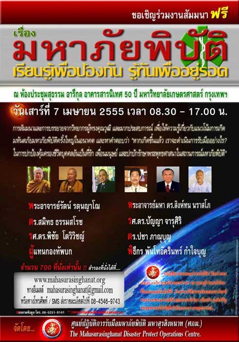 | หัวข้อกระทู้ : ร่วมงานสัมมนา (ฟรี) เรื่อง “มหาภัยพิบัติ เรียนรู้เพื่อป้องกัน รู้ทันเพื่ออยู่รอด̶ |