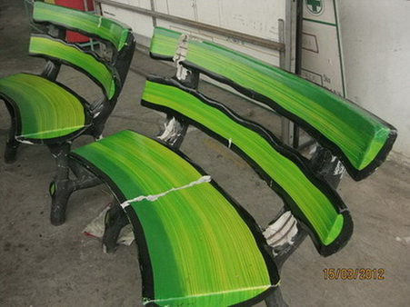- จริงอยู่โครงสร้างของม้านั่งประเภทนี้มีการเสริมเหล็ก(ลวด)ก็จริงแต่มันค่อนข้างเปราะบาง ตามรูปจะเห็นได้ว่ามีจุดหักแตกร้าวเกือบทุกส่วนของโครงม้านั่ง ปูนที่ใช้ในการหล่อก็เป็นส่วนผสมระหว่าง ปูนซิเมรต์กับทรายเท่านั้น ยกย้ายหรือนั่งแรงๆปูนก็แตกร้าวแล้ว
