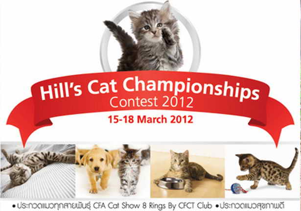 งาน Hill's Cat Champions Contest 2012 และกิจกรรมคนช่วยสัตว์สัญจร ที่จะมีขึ้นในวันที่ 15-18 มีนาคมนี้ ที่ ชั้น 4 Mcc Hall ห้าง The Mall บางแค เป็นการดำเนินงานโดย ชมรมผู้นิยมแมวแห่งประเทศไทย จัดขึ้นเพื่อให้กลุ่มคนจิตอาสาช่วยเหลือสัตว์ได้มีโอกาสออกบูธ ทำกิจกรรมหารายได้ หรือ กิจกรรมเพื่อกระตุ้นการมีจิตสำนึกในการเลี้ยงสัตว์ และยังมีการประกวดแมวทุกสายพันธุ์มาตรฐานสากล ซึ่งมีถึง 8 ริงค์ ด้วยกัน