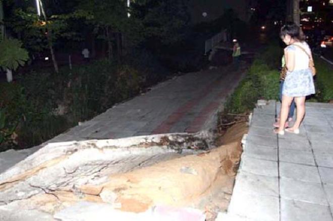 พบบาทวิถีทรุดตัวเป็นทางยาวหลายสิบเมตร หน้าร้านไก่ย่างกลางกรุง ถ.พระราม 3 เจ้าหน้าที่ช่างเครื่องกลปฎิบัติงานฝ่ายโยธา สำนักงานเขตบางคอแหลม มาตรวจสอบคาดว่าริมคลองดังกล่าว ยังไม่ได้สร้างตลิ่งคอนกรีตกั้นจนเป็นสาเหตุให้ดินถูกน้ำกัดเซาะลุกลามไปเรื่อยๆ จนเป็นโพรงด้านล่าง เมื่อพื้นคอนกรีตทนแบกรับน้ำหนักที่ถูกกดจากด้านบนนานๆ ไม่ไหว จึงทำให้ทรุดตัวลง หลังจากนี้จะให้เจ้าหน้าที่การประปามาตรวจสอบความเสียหายอีกครั้ง |