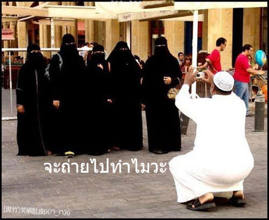 ภาพที่ 1 ... พบในกูเกิล มีคำบรรยายกำกับในภาพด้วยว่า "จะถ่ายไปทำไมวะ" ผมมีสองอารมณ์ ครับ อารมณ์ร่วมกับคำบรรยาย ก็คือ สุภาพสตรีทั้ง 5 ในภาพ เค้าแต่งกายตามวัฒนธรรมและประเพณีของชาติ-ศาสนาของเขา เห็นแต่เพียงลูกตา คนอื่นที่ไม่ใช่คนรู้จักใกล้ชิด จะรู้ไหมเนี๊ย ว่าเธอคือใครกันบ้าง ... อีกอารมณ์หนึ่งที่ขัดแย้งก็คือ ก็เค้าจะถ่ยรูปกัน แล้วมันเกี่ยวอะไรกับเอ็งด้วยวะ