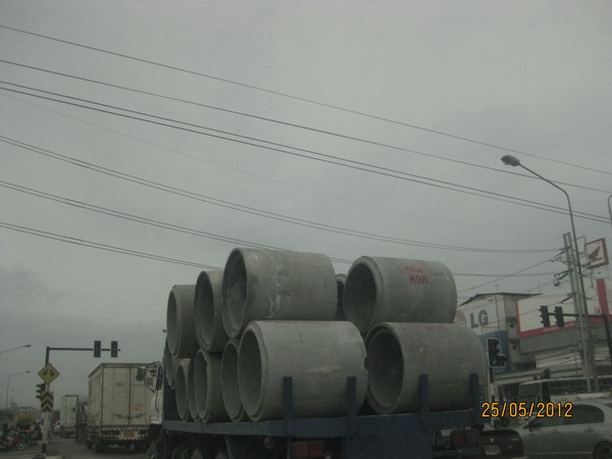 ตามภาพ เลี้ยวที่หยุดทีท่อคอนกรีตกลิ้งไปกลิ้งมา จนไถลออกมานอกรถ มันก็ไม่สนใจอะไรทั้งสิ้น ทั้งคนขับและ ตร.ที่อยู่ตรงสี่แยก มันจะล่วงไม่ล่วงช่างมัน รอให้มันล่วงมาทับหัวคนอื่นก่อนแล้วค่อยมาดู เฮ้อ!