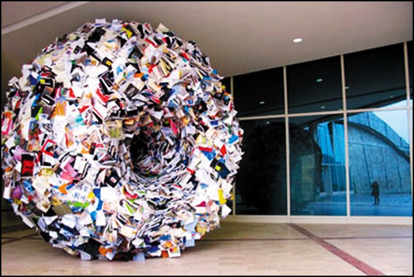 ใครบอกว่าหนังสือมีดีแค่อ่านเอาความรู้หรือแค่หาความบันเทิงใส่ตัว แล้วล่ะก็ คิดใหม่ได้เลย เพราะ อลิเซีย มาร์ติน ศิลปินชาวสแปนิชรายหนึ่งได้พิสูจน์ให้เห็นแล้วว่ามันมีค่ามากกว่านั้น เมื่อเธอจัดการเอาหนังสือหลายพันเล่มมาทำเป็นงานศิลปะ ที่ทั้งสวยงาม และอลังการงานสร้างสุดๆมาร์ติน วัย 48 ปี ใช้หนังสือทั้งหมด 7,000 เล่ม มาสร้างเป็นงานประติมากรรมชิ้นเอก ที่ทำให้ดูเหมือนว่า หนังสือมันกำลังทะลักออกมาจากตึก ซึ่งเธอใช้เวลาในการสร้างสรรค์ผลงานชั้นยอดนี้เป็นเวลา 3 สัปดาห์ด้วยกัน