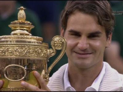 เฟดเดเรอร์ ดับความหวังชาวอังกฤษและเครือจักรภพ ด้วยการเอาชนะ เมอร์เรย์ 3 - 1 เซ็ท ด้วยสกอร์ 4-6, 7-5, 6-3,6-4 ได้แชมป์เทนนิสชายเดียว แกรนด์แสลม ที่เก่าแก่ที่สุดของโลก เป็นครั้งที่ 7 ทำสถิติเท่านักเทนนิสชาวอเมริกัน พีท แซมพลาส ที่เคยทำไว้ ครับ ... ขอแสดงความยินดีกับ เฟดเดเรอร์ และเสียใจกับ เมอรเร่ย์ ครับ