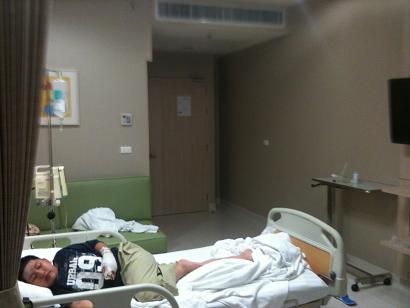 ผมไปจ่ายค่าหมอ 50 บาท แล้วรีบเข็นรถเข็นพาลูกออกไปทันทีพร้อมแม่เด็ก ถึงตอนนี้ใจยิ่งเสียใหญ่เลย คิดถึงการสูญเสียหากเป็นอย่างนั้นจริง ๆ จะทำใจอย่างไร ตอนนี้ชีวิตลูก ฝากไว้กับการเดินทางครั้งนี้ โรงพยาบาลไหนดี โทร.ถามเพื่อน สอบถามไปตามโรงพยาบาลที่คุ้นเคยและใกล้บ้านเป็นสำคัญ แม่ผมบอกว่าที่นนทเวชซิใกล้บ้านแม่ บ้างก็บอกว่าวิภาวดี บ้างก็เมโย จะเอาลูกไปที่ไหนสับสนตลอดการเดินทาง จนตัดสินใจไปโรงพยาบาลใกล้บ้าน ไปถึงประมาณ 3 ทุ่มเมื่อทางโรงพยาบาลทราบข้อมูลก็ตรวจเลือดอีกครั้งและรีบทำการรักษา ให้น้ำเกลือ หลังจากตรวจผลเลือด ก็ทราบทันที่ว่า ลูกชายเป็นไข้เลือดออก ตกใจมากๆ จะดีหรือร้ายอย่างไร หมอบอกว่าไม่ต้องกังวล รักษากันตามอาการ เด็กมีภาวะขาดน้ำอย่างรุนแรง ถึงขั้นวิกฤต