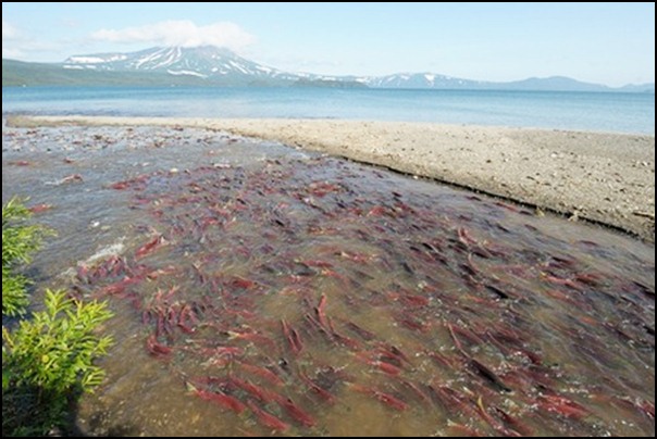 Kamchatka เป็นสถานที่ที่พบปลาแซลมอนหลายชนิดมาก อย่างน้อยก็ 6 ชนิด โดยเฉพาะแซลมอนแดง ถือเป็นพื้นที่ที่มีการวางไข่ของปลาแซลมอนมากที่สุด ....................... !!!!!