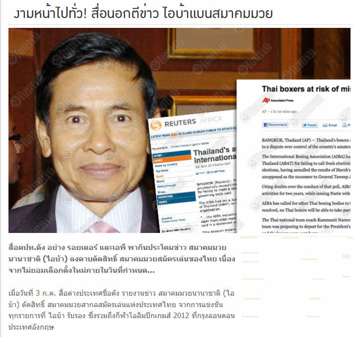 สมาคมมวยนานาชาติ ไอบา ได้เคยสั่งแบน มวยของไทยในปี54