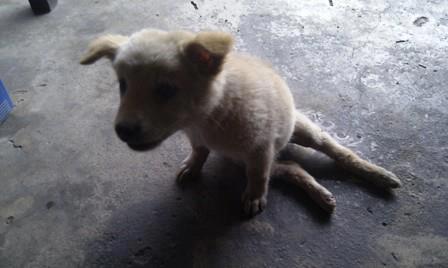 สิ้นคำเจ้าของร้าน ลูกสุนัขตัวที่เจ็ดก็คลานออกมา ขาหลังทั้งคู่ของมันลีบเหลือนิดเดียว มันต้องใช้ขาหน้าลากพาร่างกายออกมาจากหลังร้าน