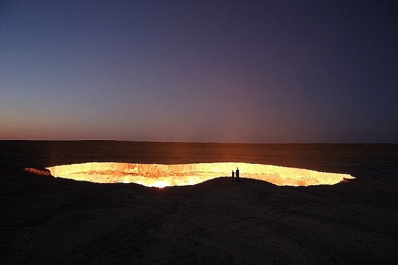 ประตูสู่ นรก นั้นเป็นชื่อ ที่คนท้องถิ่นขนานนาม ให้ตามสภาพที่พบเห็น ซึ่งแท้จริงแล้วคือ หลุมไฟขนาดใหญ่ ที่มีเพลิงไฟลุกไหม้ อยู่ตลอดเวลามานานกว่า 40 ปี ด้วยฝีมือนักธรณีวิทยา ของโซเวียต เหตุเกิดตั้งแต่ปี ค.ศ. 1971 ซึ่งมีการขุดเจาะ หลุมโพรง ที่เต็มไปด้วยก๊าซธรรมชาติ และเกิดการทรุดตัว ของพื้นดิน กลายเป็นหลุมใหญ่ ขนาดเส้นผ่าศูนย์กลาง 70 เมตร ด้วยความหวั่นว่าจะเกิด ก๊าซพิษ จึงตัดสินใจทำการเผาไหม้ เพื่อให้ก๊าซหมดไป จะได้ไม่เกิดการรั่วไหล แต่ไฉนเปลวไฟ ยังคงคุกรุ่นมาจนถึง ปัจจุบัน โดยเฉพาะยามค่ำคืน แสงจากหลุมยักษ์โชติช่วง จับตา จนต้องตั้งฉายาว่า ประตูสู่ นรก ......!!
