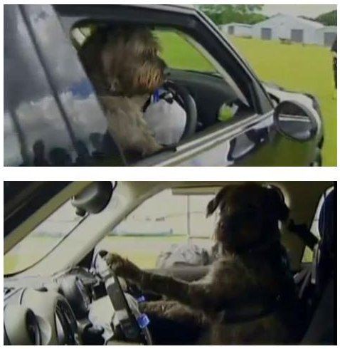 สุนัขทั้งสามตัวฝึกจนสามารถสตาร์ทรถ เหยียบคันเร่ง บังคับพวงมาลัย และสัปดาห์หน้าพวกมันก็มีกำหนดจะขับรถออกรายการโทรทัศน์ถ่ายทอดสด แต่ในระหว่างนี้ยังอยู่ระหว่างฝึกเหยียบเบรก ขณะที่ขับรถไปตามทางแคบๆ |