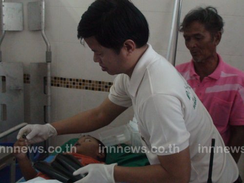 ตนจึงได้โทรศัพท์ไปแจ้งให้รถพยาบาล ร.พ.ศรีสะเกษ เพื่อให้การช่วยเหลือและในขณะที่รอรถพยาบาลอยู่นั้น ตนได้พยายามทุบหลังและทำทุกวิถีทาง เพื่อให้เม็ดมะขามหลุดออกจากหลอดลม แต่ก็ไม่เป็นผล จน ด.ช.นันทิพัฒน์ มีอาการอ่อนแรง และมาเสียชีวิตอย่างทรมาน ในขณะที่กำลังเดินทางมา ร.พ.ศรีสะเกษ