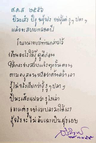 ในดร. พลเอกหญิง พลเรือเอกหญิง พลอากาศเอกหญิง สมเด็จพระเทพรัตนราชสุดา เจ้าฟ้ามหาจักรีสิรินธร รัฐสีมาคุณากรปิยชาติ สยามบรมราชกุมารี พระราชนิพนธ์เป็นบทกวีพระราชทานพรปีใหม่ พร้อม ส.ค.ส. และลงฝีพระหัตถ์ด้วยพระองค์เอง แแก่ปวงชนชาวไทย