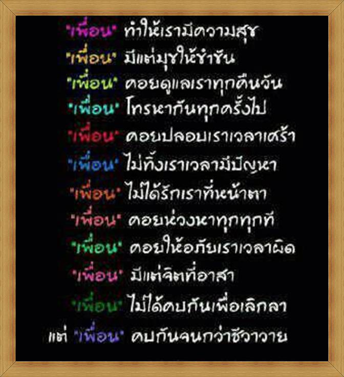 ผมสบายใจแล้วครับ ผมคิดได้แล้วครับ ว่าเพื่อนไม่ดีต้องตัดทิ้งครับ พวกนี้คบยากครับ พวกหัวหมอ เป็นภัยต่อสังคมคำว่าเพื่อนครับ มันต้องตัดทิ้งอย่างเดียว ตัดทั้งยวง ไม่ให้เหลือใย แต่นี่ผมยังปราณีนะครับที่ไม่ขอเอ่ยนามคนทั้งสองที่ทำกับผม เพราะว่าสักวันดาบนั้นจะคืนสนองตัวท่านเองครับวันนี้ทำกับผมได้วันหน้าเดี๋ยวสองท่านนี้ก็ต้องทำกันเองครับ เพราะทั้งคู่มีแต่จิตใจเห็นแก่ได้ สักวันมันก็อยากได้ของกันเองหลอกกันเองเหมือนที่ทำกับผมครับ  |