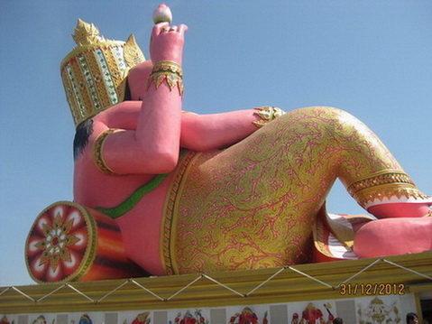 - พอดีผมเกิดปีกุน ซึ่งเห็นเขาบอกว่าเป็นปีชง และภรรยาผมเขากลัวว่าผมจะเจอเรื่องไม่ดี เพราะว่างานผมมันอยู่ที่สูงปีนนั่งร้านบ้าง ปีนหลังคาบ้าง เลยพยายามชักชวนเเกมผลักใสให้ผมไปใหว้พระพิฆเนศที่แปดริ้ว ไม่อยากจะขัดใจไปก็ไป พอไปถึงโฮ!ผู้คนมาจากไหนมากมายขนาดนี้ แน่นไปหมด