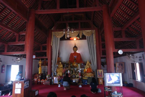 ปัจจุบันได้อัญเชิญพระอุ่นเมืองไว้เป็นพระประธานในโบสถ์ ปกติหากไม่ใช่หน้าหนาวซึ่งเป็นฤดูท่องเที่ยว ทางวัดจะปิดประตูโบสถ์ นักท่องเที่ยวที่ต้องการนมัสการพระอุ่นเมือง จึงต้องขออนุญาตจากเจ้าอาวาส เพื่อเปิดโบสถ์เสียก่อน นอกจากนี้ภายในวัดยังมีเจดีย์อนุสรณ์สถานพระนางสุพรรณกลัยา พระเชษฐภคินีของสมเด็จ พระนเรศวรมหาราช ในบริเวณวัดอีกด้วย