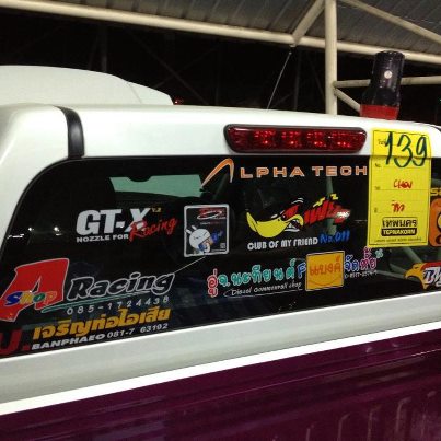 ในใบสั่งไม่ได้เขียนว่าติดสติกเกอร์ เขียนว่า "ดัดแปลงสภาพรถ" ทั้งๆที่รถก็...ไม่ได้โหลดไปซะหน่อย ล้อก็เดิมเพราะถอดล้อไปทำสี แค่มีสติ๊กเกอร์ติดอยู่ด้านหลัง เซ็ง!.. |