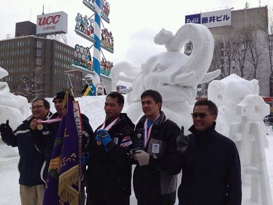 นักแกะสลักไทยเจ๋ง! คว้าแชมป์ในเทศกาลแกะสลักหิมะ 2013 ที่เมืองซัปโปโร ประเทศญี่ปุ่น นอกจากนี้ยังได้รับเลือกให้แกะสลักหิมะจำลองพระอุโบสถวัดเบญจมบพิตรอีกด้วย