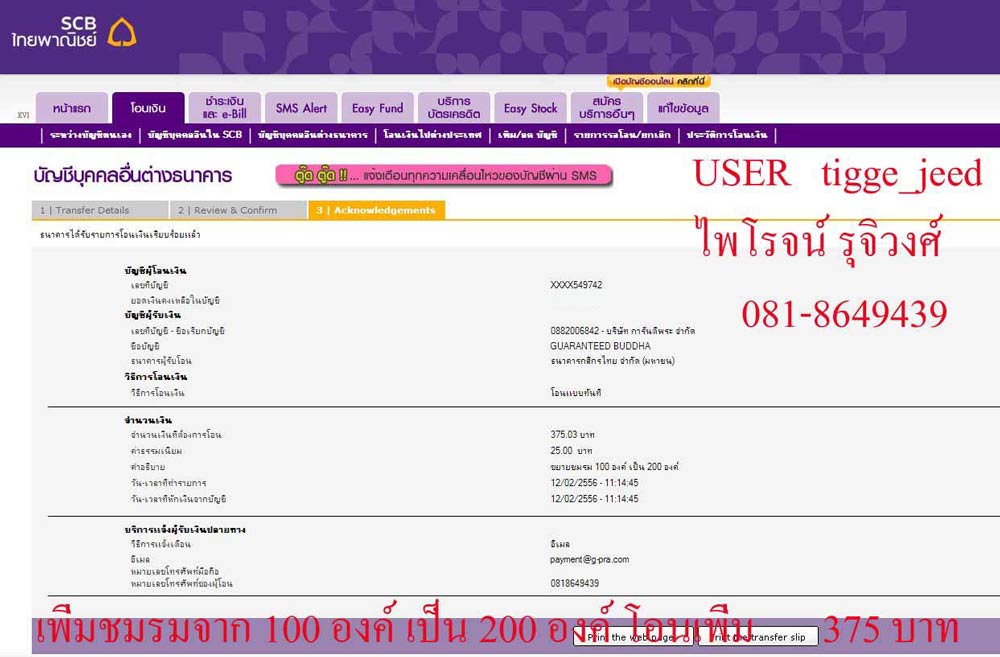 14 วันแห่งการรอคอย...แจ้งโอนเงินเพิ่มเติมร้านค้าจาก 100 องค์ เป็น 200 องค์ ตั้งแต่วันที่ 12-02-56.......มาถึงวันนี้ 26-02-56