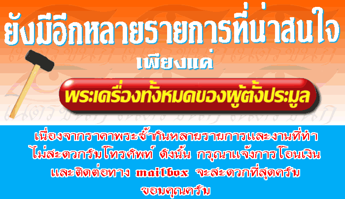 ส่วนภาพพระ หรือภาพข้อมูลพระต่าง ๆ อะไรก็ตามที่อยู่ในรายการของ เนตรชนก สามารถนำไปใช้งานได้เลยค่ะ หากมิได้เป็นไปในทางทุจริต.....ขอบคุณค่ะ |