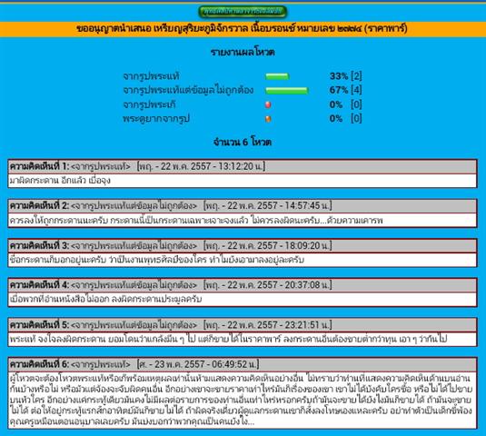 ผมว่าไม่ได้เตือนแล้วนะครับ แบบนี้เขารียกว่าด่า แต่ตลกดีนะครับ ความเห็นที่ 6 เขารู้ว่าโหวตพระอย่างไรถึงถูกต้อง แต่เขากลับว่าคนอื่น ช่วยผู้ตั้งประมูลเฉยเลย ร้อนตัว เหมือนมีส่วนได้ส่วนเสียเลยนะครับ