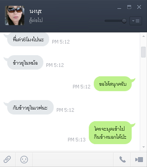 ไลน์มาบอกเมื่อเย็นเรื่องกับข้าวที่เตรียมไว้ให้ .......