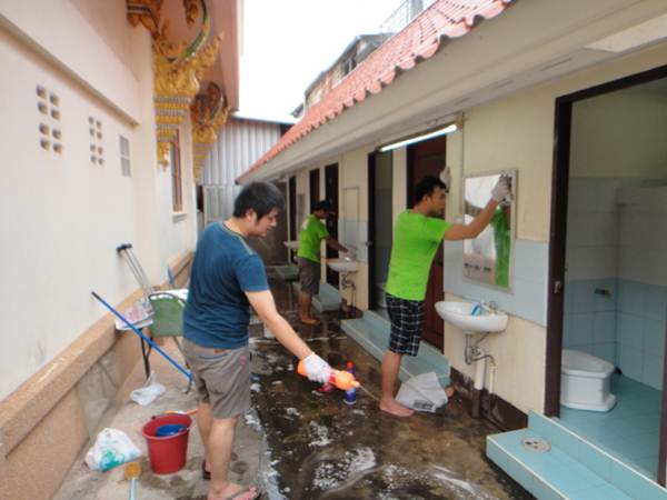 ทำความสะอาดห้องน้ำ น้องๆจากมหาไถ่ ผมขอยอมรับน้องๆผู้พิการ ถึงจะพิการทางรางกาย แต่จิตอาสาน้องๆเต้มเปรี่ยม ขอชื่นชมครับผม |