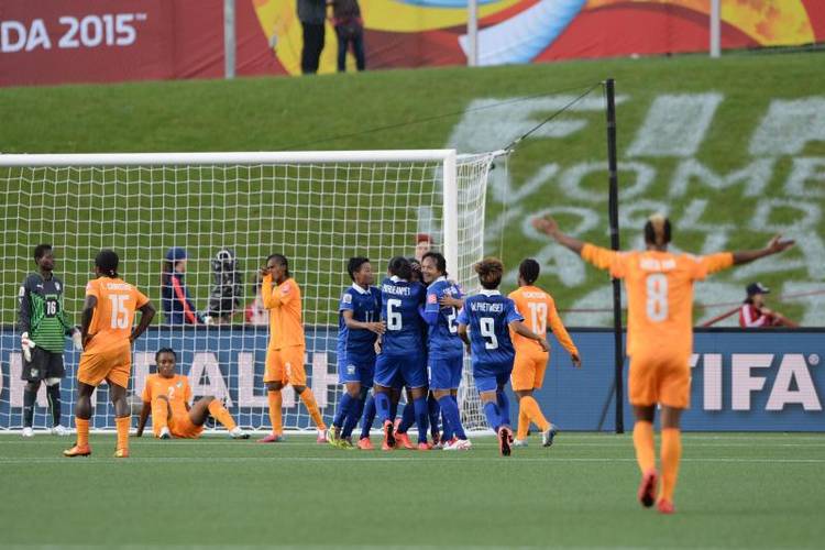 „กเตะทีมชาติไทย ทำผลงานสุดยอดเอาชนะ ไอวอรี โคสต์ 3-1 เก็บชัยชนะบอลโลกหญิงครั้งแรกได้สำเร็จ วันศุกร์ที่ 12 มิถุนายน 2558 เวลา 8:05 น. ศึกฟุตบอลโลกหญิง 2015 รอบสุดท้าย ที่ประเทศแคนาดา เป็นเจ้าภาพ รอบแบ่งกลุ่มรอบแรก กลุ่ม B ที่สนามแลนส์ดาวน์ สเตเดียม ในเมืองอ็อตาวา นักเตะสาวไทย ลงเล่นนัดที่ 2 ที่หลังกมแรกแพ้ นอร์เวย์ 0-4 เจอกับ ไอวอรี โคสต์ ที่นัดแรกแพ้ เยอรมนี ย่อยยับ 0-10 เปิดฉากมาแค่ 4 นาที เอ็นกูสซาน ยิงให้ "ช้างดำ" ออกนำก่อน 1-0 แต่นาที 26 อรทัย ศรีมณี ตีเสมอให้ทีมไทยเป็น 1-1 จากนั้น ไอวอรี โคสต์ พยายามบุกเป็นการใหญ่แต่ช่วงทดเจ็บของครึ่งแรก อรทัย โหม่งให้ไทยเขยิบขึ้นนำ 2-1 ตามด้วย ธนัสถา ชาวงษ์ โหม่งเข้าไปอีกในนาที 75 ไทยนำห่าง 3-1 ช่วงเวลาที่เหลือ ไอวอรี โคสต์ เดินหน้าบุกหนักตีตื้นมาเป็น 2-3 จาก นาฮี นาที 88 แต่ก็ทำได้แค่นั้น ไทย คว้าชัยชนะในนัดประวัติศาสตร์ในฟุตบอลโลกหญิง รอบสุดท้ายเป็นครั้งแรก เก็บเพิ่มเป็น 4 คะแนน นัดสุดท้ายจะเจอกับ เยอรมนี วันที่ 15 มิ.ย.