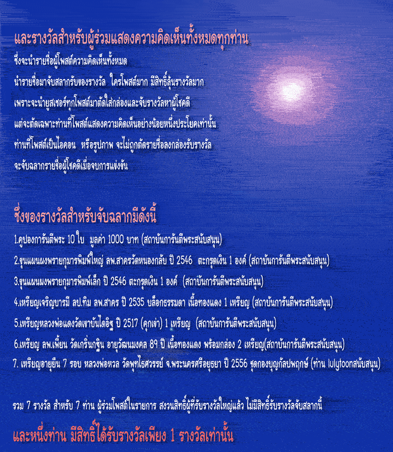 ท่านใดจะโชคดีกับการร่วมโพสต์ ในศึกครั้งนี้ โพสต์มากมีสิทธิ์ลุ้นมาก แต่โพสต์น้อยอาจเป็นม้ามืดคว้ารางวัลไปก็ได้ครับ อย่าลืมติดตามนะครับ