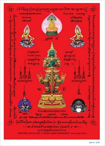 ได้ทำพิธีบวงสรวงสิ่งศักสิทธิื และพุทธาภิเษกผ้ายันต์ท้าวเวสสุวรรณ .... โดยนิมนต์พระสงฆ์จากวัดสุทัศน์ 9 รูป ประกอบพิธี