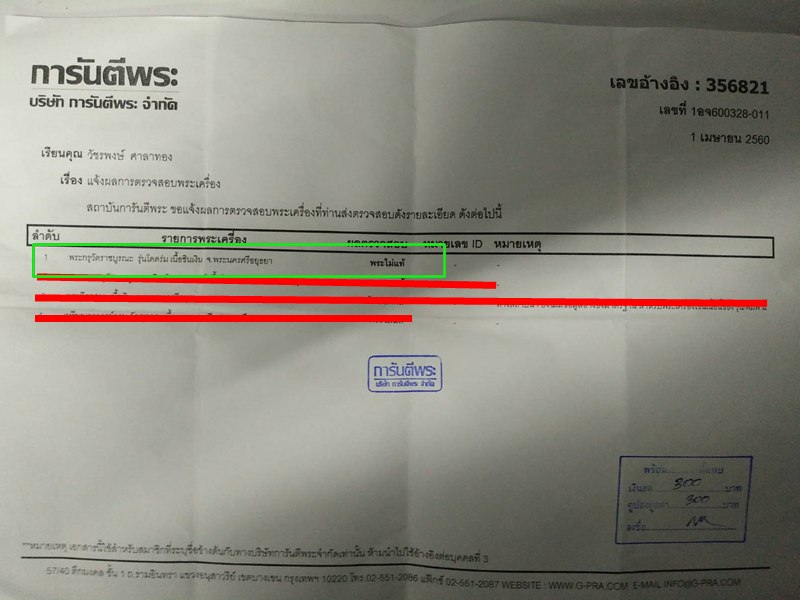 ***เมื่อสักครู่นี่ ผู้ขายท่านนี้โทรมาเพื่อจะขอคืนเงินเฉพาะค่าพระ จำนวน 4,150 บาท ส่วนค่าส่งตรวจ 500 บาท จะไม่คืนครับ ซึ่งจริงๆตามกฎเเล้วผู้ขายต้องคืนให้ผมด้วย แต่ด้วยความที่ผมรู้สึกเบื่อหน่ายเต็มทีกับความเข้าใจกฎระเบียบของเว็ปและความรับผิดชอบการขายของผู้ขายท่านนี้ ผมเลยถือว่าอย่างน้อยได้เงินค่าพระคืนก็ยังดี เลยยินยอมตามนั้นครับ