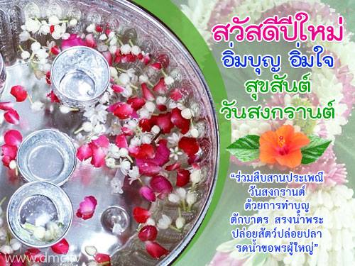 เนื่องในโอกาสวารดิถี วันสงกรานต์ ปีใหม่ของไทย ซึ่งถือว่าเป็นวันแห่งความรัก..วันของครอบครัว..วันแห่งการแผ่พลังเมตตาจิตต่อสรรพสิ่ง...ขออำนาจคุณพระศรีรัตนตรัย สิ่งศักดิ์สิทธิ์ทั้งหลายที่ท่านเคารพนับถือ..ตลอดทั้งผลบุญกุศลอันใด..ที่ท่านได้กระทำมา...ขอจงโปรดดลบันดาลให้ท่านและครอบครัว..จงมีแต่ความสุข ความเจริญ ทุกข์ โศก โรค ภัย สรรพเคราะห์ ทั้งหลายจงมลายหายไป มีสุขภาพที่แข็งแรง สมบูรณ์..ลาภ ยศ สรรเสริญ เงินทอง จงไหลมาเทมา ไม่ขาดสายดั่งสายวารี ขอให้มีแต่ความเจริญรุ่งเรือง..ทั้งทางโลก และทางธรรม ตลอดกาลนานเทอญ..สาธุ สาธุ สาธุ |