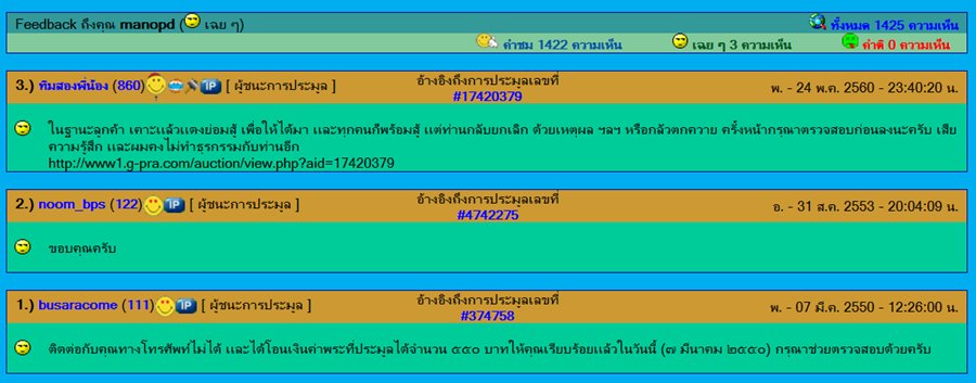 ด้วยความสัตย์จากใจ ผมไม่ได้มีเจตนาที่จะลงผิดกระดาน และไม่ได้มีเจตนากลัวว่าจะขายพระได้ราคาต่ำ หรือที่ทางคุณ ทิมสองพี่น้อง ใช้ข้อความว่า กลัวตกควาย เพราะพระที่ลงตั้งประมูลไม่ได้มีราคาสูงมากจนต้องกลัวว่าขายผิดราคา ซึ่งรายการประมูลเก่าๆที่ปิดไปในอดีตก็มีทั้งขาดทุนและกำไรเป็นเรื่องปกติอยู่แล้ว แต่มาตำหนิกันอย่างนี้ผมมองว่าจะใช้คำพูดที่แรงไปหน่อย