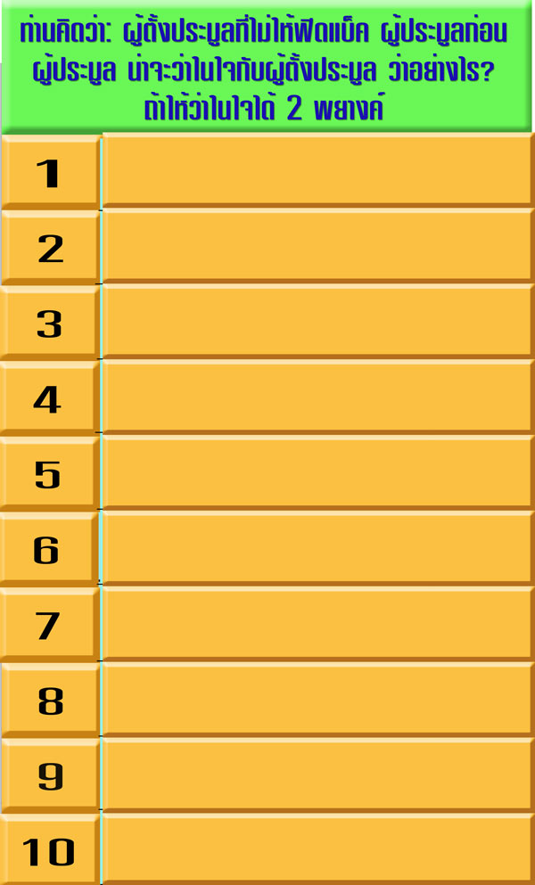 แต่ละคำถ้าตรงกับผลสำรวจ (แบบนั่งเทียน) มีคะแนนให้ครับ