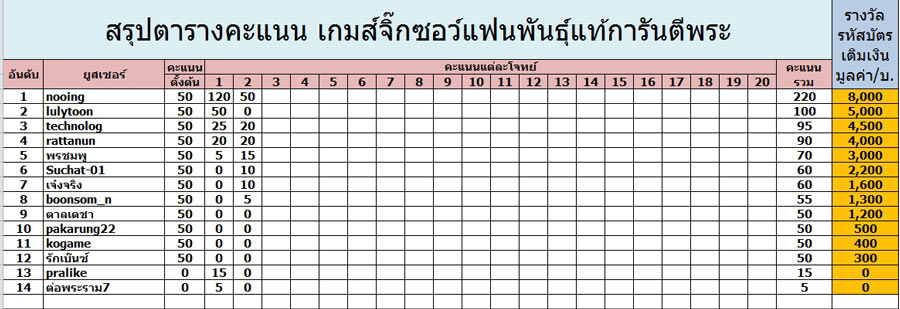 ขอบคุณทุกท่านที่มาร่วมสนุกกัน ขอเชิญชวนสมาชิกทุกท่านมาร่วมเล่นเกมส์ด้วยกันนะครับ