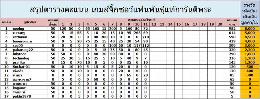 หลายๆท่านก็ยังเก็บคะแนนกันได้ดีอยู่ เก็บเล็กผสมน้อยไปเรื่อยๆครับ ติดชาร์จ 12 อันดับก็รับรางวัลแน่นอน