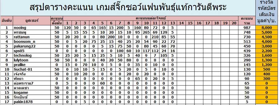 เกมส์คงสนุกมาก และเป็นไปตามเจตนาที่ผมพยายามสร้างไว้ และมีการตอบถูกได้คะแนนกันถ้วนหน้า
