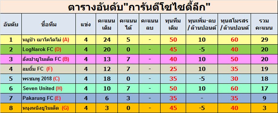 - ตอนนี้คะแนนจี้มาสูสีกันหลายทีม อีก 2 แมท น่าลุ้น ได้ลุ้นกันหลายทีมครับ