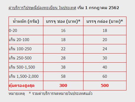 | หัวข้อกระทู้ : อัตราค่าบริการไปรษณีย์ลงทะเบียนในประเทศ (อัตราใหม่ เริ่ม 1 ก.ค. 62) |