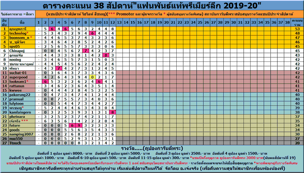 | หัวข้อกระทู้ : ตารางอันดับ ทายผล"แฟนพันธ์แท้พรีเมียร์ลีก 2019-20"....สัปดาห์ที่ 12 |