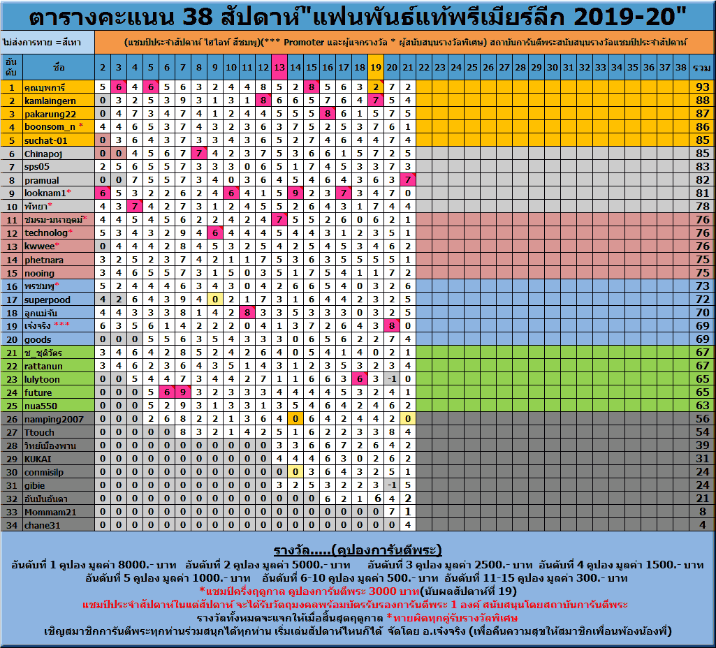 1.ให้สมาชิกทำการตรวจสอบคะแนนของตัวเองว่าในตารางลงไว้ถูกต้องแล้วหรือไม่ (หรือเห็นของท่านใดไม่ถูกต้องก็ให้แจ้งได้เลย)