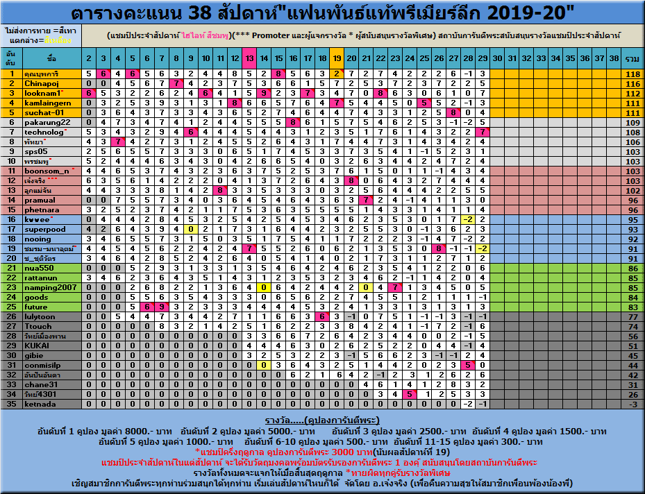 - การทายผลประจำสัปดาห์ที่ 30 จะตั้งกระทู้ขึ้นในวันที่ 18/6/63