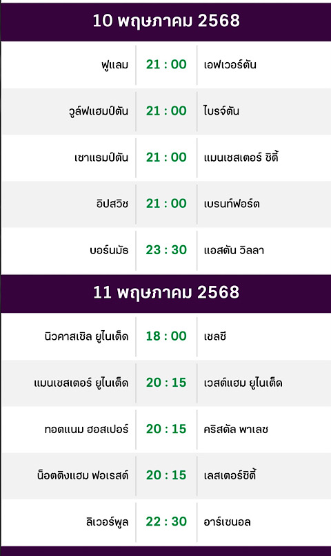 - คู่ที่ 1 เริ่มแข่งขันเวลา 21.00 น. วันที่ 10/5/68