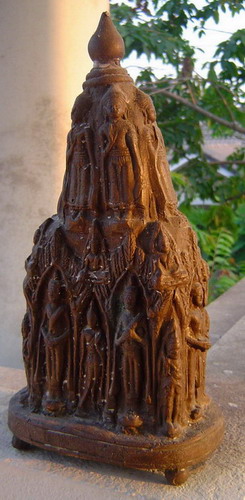 พิมพ์ทรง แปลกตา มีพระอยู่โดยรอบกลุ่มองค์ ซึ่งมีสัณฐานคล้ายเจดีย์