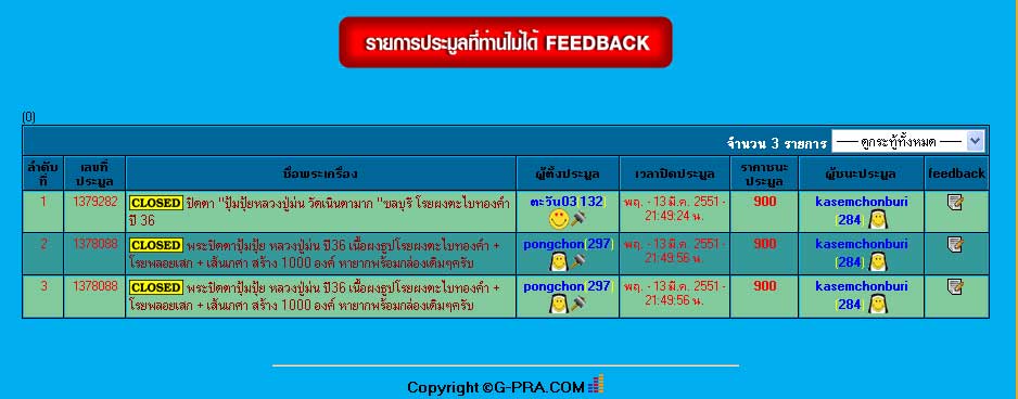 พระรายการที่ 2 กับรายการที่ 3 เป็นพระองค์เดียวกัน รายการเดียวกัน...ระบบท่านคงเมตตาให้ใส่ Feedback ได้รายการเดียวถึงสองครั้ง...ยังงี้ทำยอด Feedback ได้เร็วกว่าปกติ