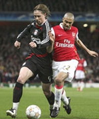 ผ่านมาถึงนาทีที่ 21 มาติเยอ ฟลามินี่ กองกลางชาวฝรั่งเศสของไอ้ปืนใหญ่ เปิดบอลข้ามแนวรับให้กับ โรบิน ฟาน เปอร์ซี่ย์ สอดขึ้นมาวอลเลย์ด้วยเท้าซ้ายระยะไม่ไกล บอลปลิวข้ามคานไป นาทีต่อมา เจ้าบ้านทำเกมรุกกันขึ้นมาได้สวย ฟาเบรกาส ไหลบอลให้กับ โรบิน ฟาน เปอร์ซี่ย์ กระทุ้งจากระยะ 20 หลา บอลพุ่งวาบเข้ากรอบ เล่นเอา โฆเซ่ เรน่า นายทวารหงส์แดง ต้องบินปัดข้ามคานไป